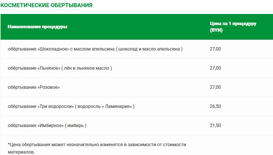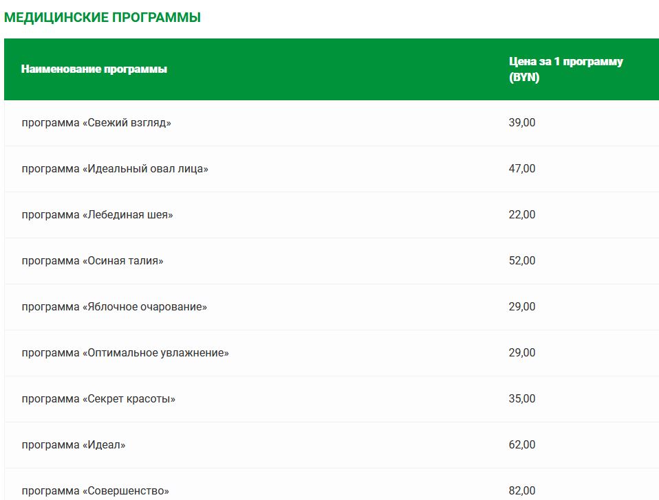 Прейскурант цен на платные медицинские услуги в санатории «Солнечный»